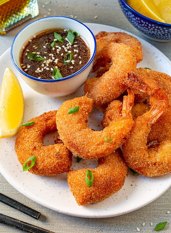 Пошагово: Креветки обвалять в муке, взбитом яйце и сухарях, жарить в масле до золотистой корочки.